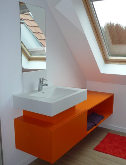 Un aménagement sur mesure en résine minérale apporte une réelle valeur ajoutée à un bien immobilier. Dans le cadre d’une vente ou d’une location premium, une salle de bain équipée d’un plan vasque en Krion®, HI-MACS®, Varicor® ou Corian® renforce immédiatement la perception de qualité.