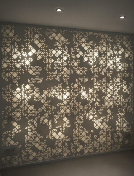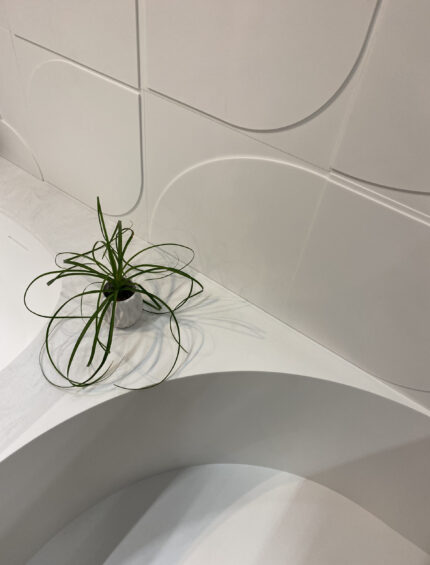 Grâce à sa composition homogène à base de charge minérale, la résine de synthèse (Solid Surface) permet de créer des surfaces murales continues, sans aucune ligne de rupture.
